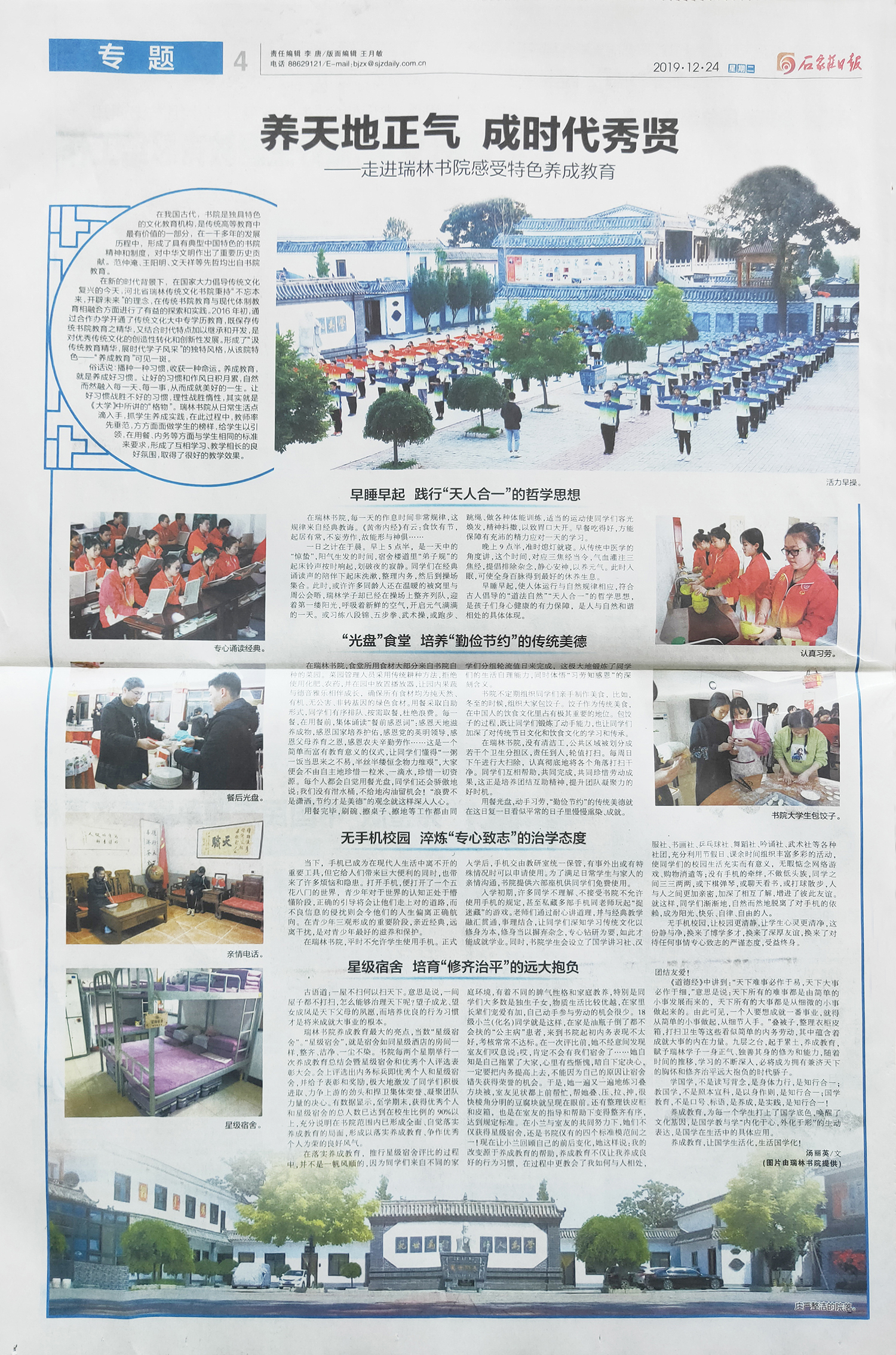 石家庄日报:走进瑞林书院感受特色养成教育